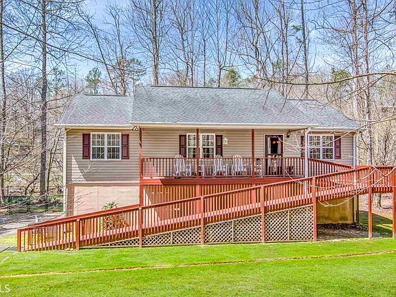 3BR/3BA RIVER FRONT Home in Ellijay with Level/Easy Access to your PRIVATE DOCK overlooking the Coosawattee River!! This home offers main-level living & an open floor plan, perfect for full or part time living or your vacation property! The Living Area is spacious with a STONE gas FIREPLACE. Inside the Kitchen & Dining Areas, you will find plenty of storage. 3 Bedrooms & 2 Bathrooms are on the Main Level; the Master Bedroom features a walk in closet, attached Full Bath & access to a screened porch overlooking the RIVER! The Full Basement is partially finished with the opportunity for a hobby room/4th bedroom with an attached Full Bath! The unfinished portion is excellent for storage/work shop & plenty of room for cars/parking. Play the day away outside at the RIVER, in the spacious yard, on the covered front porch or back decks; so much to offer with this property!