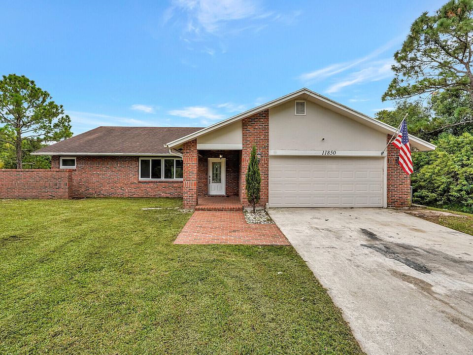 Single Family Ranch Home 2 car garage located on 1.25 acres, fenced property located in the Acreage. CBS with traditional Red Brick Front, 3/2 updated kitchen/baths, impact windows, 8 yr roof, 3 yr AC, split floor plan, enter living dinning room, round to the kitchen and large family room, built in bar, perfect for entertaining, tile and vinyl throughout. Large screen patio. No HOA, bring all vehicles and toys. Potential for expansion, farm or horses. Ask about seller incentives!!