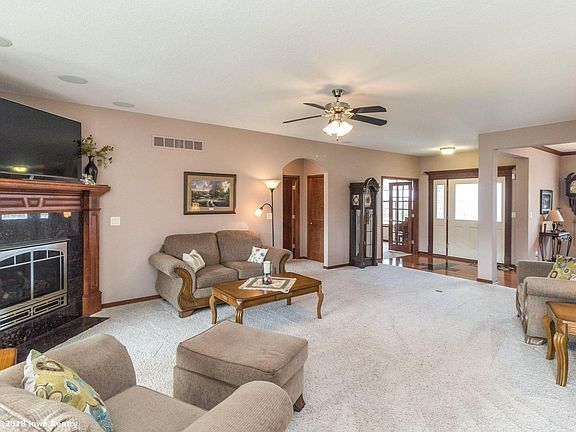Immaculate executive walk out ranch on over 1 acre lot. You will fall in love with over 4000 sf of finished living space. This open plan has wonderful finishes, huge wall of windows on the back providing wonderful views and oversize 4 car garage. Formal dining, home office, open great room with fireplace, large kitchen with stainless steel, granite, walk-in pantry, and double oven. Master has heated tile floor, tile shower, dual vanity, and custom walk-in closet. Full finished lower level with heated floors, 2 bedrooms, full bath, home theater/work out room, Geo Thermal heating/cooling, central vac, irrigation, wired for security, and so much more. Beautiful yard and landscaping with over 35 trees. Look for our feature sheet for full list of highlights.