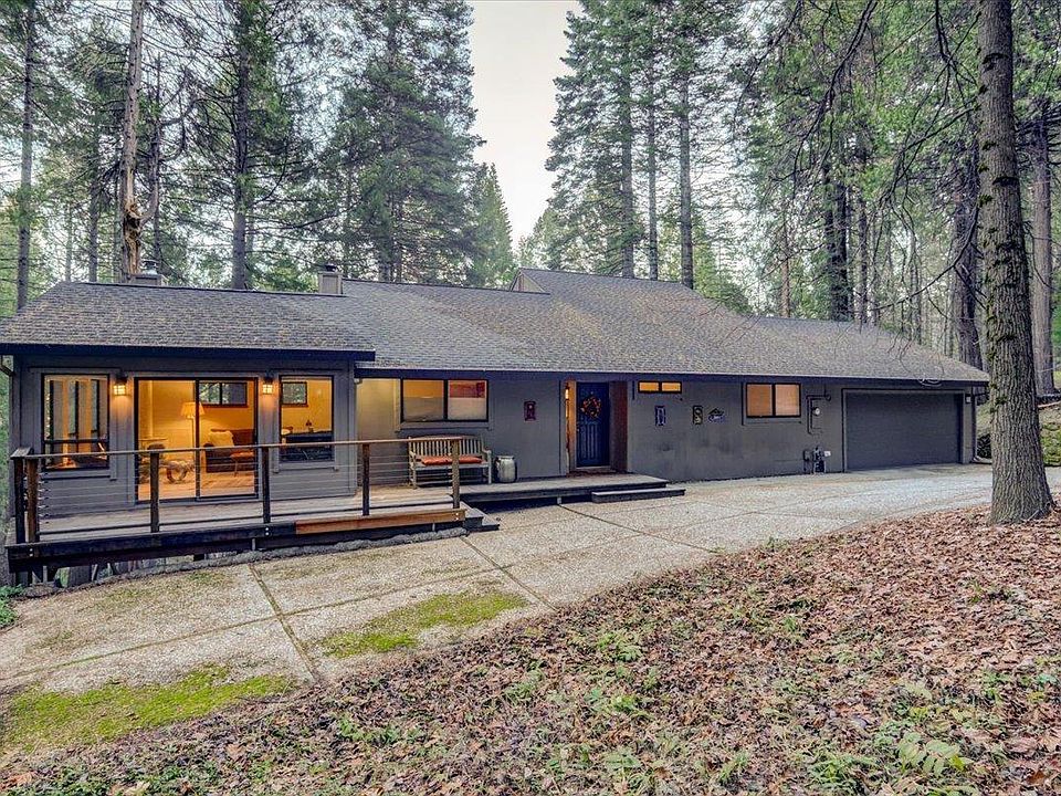 Have you or someone you know been looking for the perfect opportunity for an air bnb or second home with some furnishings? Don't let this home just minutes from historic downtown Nevada City slip away! Great versatile floor plan with two bedrooms, full bath, and sun room what would be perfect for a home office that is complete with extra electrical outlets and free standing wood stove all on the main level. Generous master suite upstairs, master bath, walk-in closet, and balcony with tree top views. Inviting open floor plan with sunken kitchen, dining area, and generous living room with fireplace and raised rock hearth opening up to a expansive deck. This home has been well maintained inside and outside with extensive work done in regards to defensible space, this parcel has been well groomed and the property is turnkey ready. There is a fire hydrant located approx. 200+/- feet away from the property, and also a NID ditch/hiking trail is approx 200 ft +/- north of the house to enjoy. Don't forget to check out all the basement storage! See you soon.