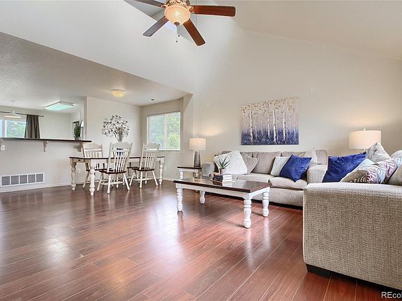 This corner-lot charmer is directly across the street from River Run Park in the Henderson area of Commerce City. Step on into the open family room with extended dining space that will easily accommodate a full-size dining table or generous family space. The eat-in kitchen with SS appliances leads to the backyard. The large backyard deck and fenced yard is ideal for a BBQ with friends and family. The oversized attached one-car garage has a house entry-door plus the main-floor powder bath is super convenient for your guests. Upstairs, enjoy the sunny loft perfect for a library or office/study space plus two nicely sized bedrooms and a full bath. Low HOA and taxes are a bonus! New roof in 2019 and water heater in 2016. All kitchen appliances and a 1-Year First American Buyer Home Warranty are included.
