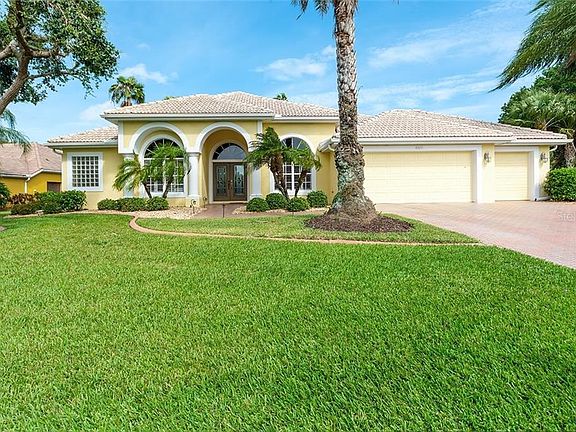 Located on a stunning oversized "park" like lot, this very popular "Great Room" floor plan home has 3 bedrooms, 2 bathrooms, dining room, den, breakfast room, pool, spa, lanai with summer kitchen, tile roof, paver driveway and a 2.5 car garage with a work shop. New master bathroom in 2014, new A/C in 2014, new hot water heater 2014, new pool heater/spa heater with remote 2020, interior painted, 2015, new carpet 2015, new garden lights 2019, and new kitchen backsplash in 2019. Home also has tankless hot water in master bathroom and a well for irrigation! River wilderness Golf and Country Club has 2 twenty four hour manned guard gates plus a boat ramp on the Manatee river. Golf Tennis, Athletic, and Social memberships are available but are not mandatory. The Ft. Hamer Bridge is just minutes from the community. This bridge connects Parrish to Lakewood Ranch.