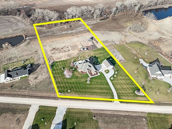 Welcome to 11851 N Valley Farms St, Sedgwick, KS! This stunning 4-bedroom, 3 1/2-bath home sits on a serene 4.3-acre lot and offers a perfect blend of comfort, style, and functionality. The home features a spacious attached 3-car garage, as well as a separate, fully equipped shop with heat, air conditioning, and epoxy floors — ideal for any hobbyist or business needs. Step inside to find an inviting open-concept living space with a beautifully appointed kitchen. The kitchen boasts all stainless steel appliances, a large walk-in pantry, a center island, and a quartzite sink, while under-cabinet lighting adds a warm touch. The adjacent living room and eating space are perfect for entertaining, while a separate formal dining room and well-appointed office offer additional versatility on the main floor. The master suite is a true retreat with a spacious bedroom featuring indirect tray lighting, a bay window, and two closets. The luxurious master bath includes radiant heat floors, dual sinks, quartz counters, and a relaxing soaker tub. On the main floor, two additional bedrooms share a Jack-and-Jill bathroom, providing comfort and privacy. The expansive basement adds even more living space with a large family room, a wet bar equipped with a wine fridge, beverage fridge, and kegerator. There’s also a bedroom and full bath with a jacuzzi tub, along with a flex room that could serve as a workout studio. A huge storage room ensures you have plenty of space for all your needs. This property is designed for convenience and outdoor enjoyment with a built-in fish aquarium (removable if desired), an irrigation well, sprinkler system, alternative septic, and security system. The exterior features a paved driveway, fruit trees including cherry, peach, and apple trees, raised garden beds, a chicken coop, and surround sound both inside and outside. Enjoy your outdoor space with a built-in fireplace and a separate firepit, making it easy to entertain or relax in your private oasis. Don’t miss the opportunity to own this beautifully maintained, versatile property that offers the best of both luxury and country living!