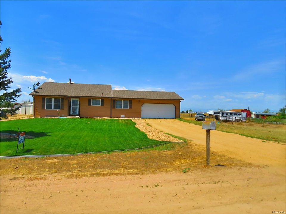 Great horse property ready for all your animals This home has been newly updated with new paint, appliances, and flooring. There's a 5 stall barn with tack room, electricity and water, along with a 20x30 steel building for storage or work shop. the property is fenced and has plenty of room for grazing and riding. As you enter you're greeted by vaulted ceilings in the living/family room and wood railings. the kitchen has been updated and has plenty of cabinets and a nice sized breakfast nook. From the kitchen you can see the lower family room/game room/ study. This home has maintence friendly siding and a newer roof. You should see this home if you need room for your animals, and want a move-in ready home close to town, DIA, and highways.