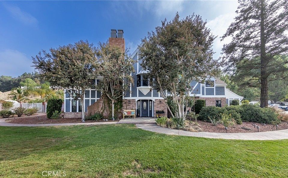 STUNNING!!!!! This house is PERFECT for entertaining! Classic Tudor style house with gorgeous canyon views on over an acre on this private location. 4 bedrooms, 3.5 bathrooms and 3455 square feet. 1 bedroom and 2 bathrooms downstairs. Gourmet kitchen that has 9X6 foot single slab marble island. Kitchen is equipped with Thor 6 burner stove with dual oven and griddle, Bosch stainless dishwasher, commercial Refrigerator and Freezer, wine fridge and Quartz counter sideboard that affords extensive storage options. Large walk in pantry with tons of shelving and storage. The kitchen opens up to family room with windows and doors everywhere leading to backyard. French doors open to covered patio. Newer roof, newer dual ac, newer vinyl fence, new sports court in backyard, freshly painted exterior, new flooring, and all new dual pane windows. Separate dining room and living room. Living room has vaulted ceilings with wood beam accents. Fireplaces can be found in family room and living room. Extra large master bedroom boasts an ensuite bathroom with deep oval soaking tub, generous size shower, dual sinks, and his and hers walk in closets. Backyard is very spacious with beautiful pool and spa. 3 car garage has tons of storage space. Location is just minutes away from Redlands Community Hospital and Loma Linda.