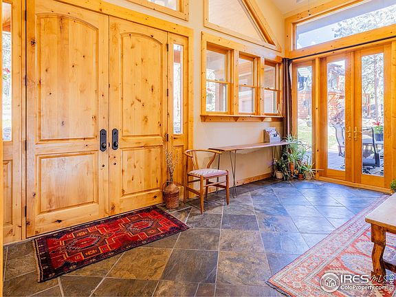 Welcome to your dream home in the mountains! This charming home, immersed in the tranquility of nature is private, yet situated in the wonderful, sought-after neighborhood of Spruce Canyon Circle. The home sits amidst a beautiful aspen grove, which you can enjoy from the giant windows in the main area of the house, from either of the two back decks, or take a stroll, play frisbee, or take a picnic out. Frequent wildlife visitors include deer, turkeys, bunnies, with the occasional elk, moose, and fox. The home has been thoughtfully designed with an open layout, featuring a private main bedroom with ensuite and walk-in closet, a kid-friendly wing, office, and a new 508 sq ft addition was completed in 2023 with a bonus loft space, new 3/4 bathroom, and upper deck overlooking the gorgeous trees. The addition is set up as an entertainment and workout space, with high ceilings and fantastic natural light. Access the upstairs by a beautiful, custom wood spiral staircase, built by a craftsman in Wisconsin. Spruce Canyon Circle has great proximity to Eldora, Walker Ranch, Gross Reservoir, Nederland, Boulder, and Golden, making outdoor adventures effortless. The carriage house above the garage provides an ideal, private space for guests, in-laws, or could be used as an art studio. Enjoy a less than 10-minute drive to the new Charter School, Jefferson Academy K-8 at Coal Creek. The main home has a new standing-seam metal roof, finished in 2023, and new windows throughout. Experience the best of mountain living in this open yet cozy home!