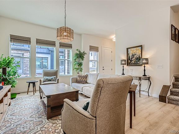 Stunning Remington townhome ready for move-in in desirable Wheat Ridge at Hance Station. This townhome boasts an exceptional floor plan with the entire first level having upgraded scratch-resistant engineered hardwood, added light fixtures, and a whole house surge protector. The tall windows allow natural light to flood in, giving the home a bright and welcoming ambiance. The living room flows seamlessly into the high-end kitchen with a huge kitchen island with pendant lighting, upgraded granite countertops, ample cabinetry, and wifi appliances. The dining room is just off the kitchen and features access to the private courtyard and the 2-car detached garage. It's perfect for grilling, potted plants, and gatherings with friends and family. Upstairs, the primary bedroom suite features vaulted ceilings and a private en-suite bathroom complete with an upgraded walk-in shower with poured slab/tile. Two additional sunny and spacious bedrooms are also on the upper level as well as a full-size bathroom. Discover upgraded plush carpet throughout the second floor that adds comfort to your living spaces. For technology enthusiasts, the townhouse is equipped with Cat 6 ethernet ports in the bedrooms and living room, providing a reliable and high-speed internet connection. You will also appreciate the ample storage throughout the home, making it easy to keep everything organized and tidy. This townhome is move-in- ready, so you can start enjoying your new home immediately without waiting for a new build! This truly fantastic location is just steps from the Wheat Ridge light rail station and is close to Old Town Arvada, Golden, and I-70 for any of your other Colorado adventures!
