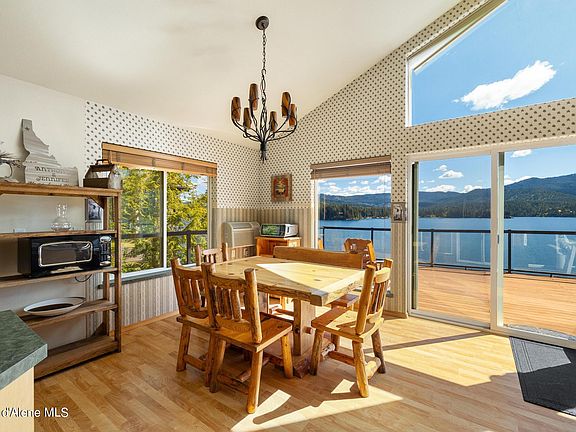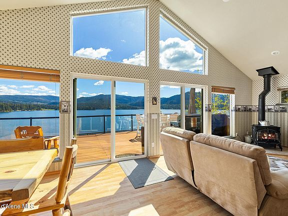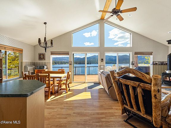 Tucked away on the highly sought after western shore of Hayden Lake, this waterfront home is what dreams are made of. Unparalleled views of the mountains and the lake from the moment you walk in. Enjoy morning coffee and beautiful sunrises from the comfort of the kitchen or the cozy living room. Two expansive decks are perfect for outside entertaining or simply relaxing in the hot tub. Gracious master en-suite comes complete with walk-out access and sweeping lake views for miles. The double slip dock is ready and waiting for your ski boat and patio boat. Ample parking spots available for all the lake house get-togethers with friends and family. Just a short distance to town but feels like a world away. Life is better at the lake!