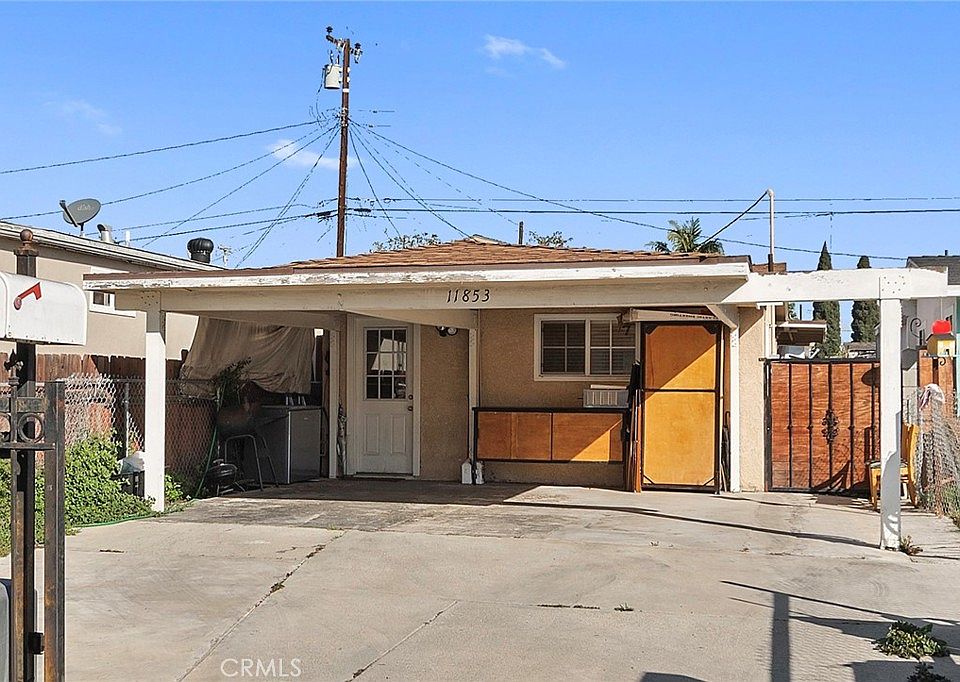 BACK ON MARKET! WELCOME HOME to your very first home as a homeowner! This is it! The perfect 2 bedroom 1 bath starter home for all new homeowners out there. Centrally located near everything! Community centers, markets, restaurants, gas stations, close to many different freeways and great schools! Walk into an open area from the kitchen to the living room following into the 2 bedrooms and 1 full bath complete with hardwood floors throughout the entire home. Granite countertops in the kitchen, wood cabinets with a built in dining table, a wall AC unit, and a refrigerator included. Master bedroom offers hardwood floors, its own wall AC unit, and a top & bottom washer/dryer conveniently located also all included. In the front you will find a large covered carport area fenced in with an automatic gate for easy access and privacy! In the back is a spacious covered backyard area great for entertaining but currently used as a large work space. Use your imagination and make it anything you want! Plus you will find enough room for the storage shed that is also located in the back. Don't miss out on this rare opportunity!