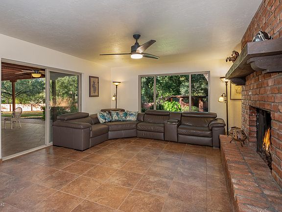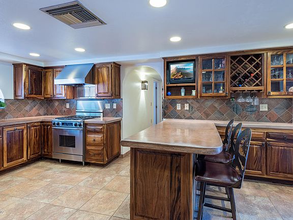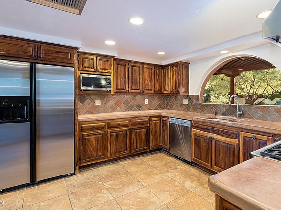 Quality constructed masonry home on corner lot on over 1/2 an acre nestled by mesquite trees. Open split floor plan offer space for everyone in the family to enjoy with game room and inviting living spaces with see through double sided fireplace. Gourmet kitchen boasts stainless steel appliances, abundant hand crafted solid Parota wood cabinetry and polished concrete counters. Master suite features private patio with hot tub and romantic fireplace. Immaculate and lovingly maintained home is move in ready with new carpet and freshly painted. Fabulous north facing back yard is a lust desert retreat. Delightful outdoor living space features: fountain, lush crisp grass, covered patio in a private park-like setting. Plus pull through gate and storage shed and oversized 3 car garage..