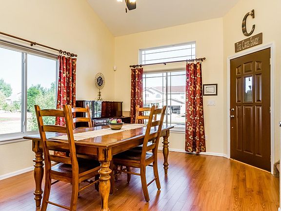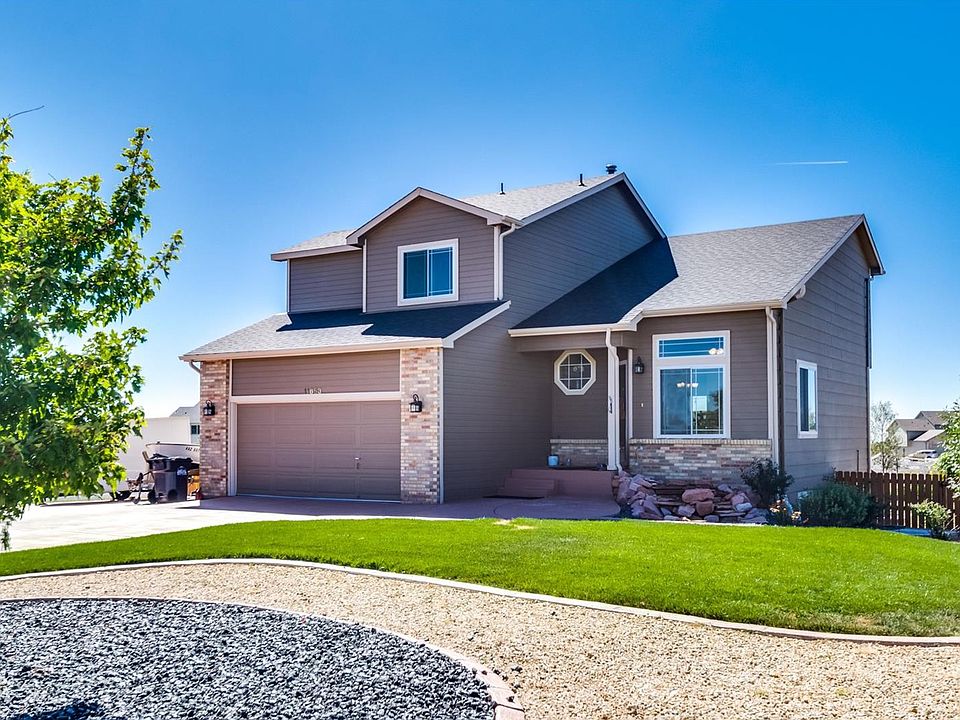 Four bedrooms plus a loft, 3-1/2 baths, Family room w/gas fireplace, large kitchen with island, updated stainless refrigerator and smooth top stove. Big master bath with walk-in closet and double sinks. The finished basement is bright and open with a family room, wet bar and bedroom. Beautiful landscaping with water feature by the front door, extra parking for boat or RV, this property includes an automatic sprinkler system, a 6' privacy fencing around patio and fire pit, PVC fencing, dog run, and Tuff shed. Pikes Peak views and wide spaces on over an acre in the middle of Falcon. Located in desirable Woodmen Hills, this house has wood laminate floors in the kitchen and dining room. The open concept kitchen overlooks the family room with a gas fireplace. Views from the 16x24 covered composite deck and great outdoor space for all seasons. Two community centers featuring indoor and outdoor pools and 27 hole golf course, weight room, and clubhouse.