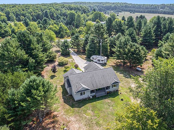 Built in 2007! Situated on a forest setting is this beautiful 1,998 sq. ft. 3 bedroom 2 1/2 bath ranch style home on 35.43 acres with abundant wildlife in desirable Grant Township, North Mason County. Not far from Lake Michigan, and located between Manistee & Ludington. Some of the features include; large primary bedroom, main floor laundry, hard surface countertops, tile floors in the entry, bathrooms, & kitchen, large 2 car attached garage, newer foundation system in the full basement with 9 ft. ceilings, and a large covered back porch with composite decking. Home is less than 17 years old and built to 2007 construction code. Schedule your tour today.
