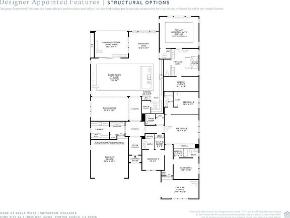 Summer 2025 Move-In: Large Western Canyon Home Site! The Silverado's inviting covered entry and welcoming extended foyer flow past the beautiful dining room into the expansive great room and casual dining area with coffered ceilings, with views to the desirable luxury outdoor living space beyond. The well-equipped gourmet kitchen is highlighted by a large center island with breakfast bar, plenty of counter and cabinet space, and a huge walk-in pantry. The splendid primary bedroom suite is enhanced by a lovely, coffered ceiling, massive walk-in closet, and a deluxe primary bath with a dual-sink vanity, large soaking tub, luxe shower, and private water closet. Central to a generous flex space, the secondary bedrooms feature roomy closets and private full baths. Disclaimer: Photos are images only and should not be relied upon to confirm applicable features.