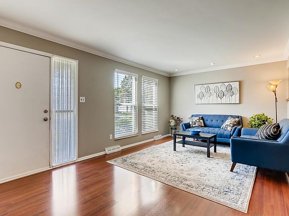Lovely end unit townhome with open floor plan and tons of natural light. Move in ready with granite countertops and wood laminate flooring on main level. Upstairs with master and two large bedrooms. Finished basement has two additional non-conforming bedrooms or office and rec-room as well as 3/4 bath. Attached two car garage and access to common area/yard is perfect for storing your outdoor gear or playing yard games at home. Updated with new furnace, new windows, new roof, new paint, new gutters, and newer hot water heater. No better value for condition and square footage!