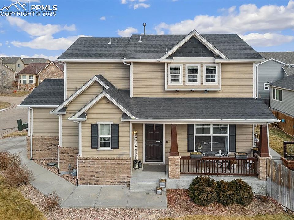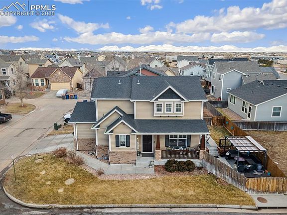Lovely Home that's Move-In Ready! You will be delighted with open floorplan and 9ft ceilings. Main floor is 100% solid surface flooring. Living room flows into the dining and kitchen area. Kitchen is spacious with a breakfast bar, a tremendous amount of cabinet space, stainless appliances with the dishwasher and stove that are able to be wifi/app controlled, new sleek microwave, and a pantry! The half bath on the main floor is perfect for company when entertaining. Upstairs includes a dedicated nook/desk area with built in cabinets. Primary bedroom suite is a true retreat with vaulted ceilings, attached bathroom and walk-in closet. Additionally, there are two well sized bedrooms and a full bathroom. This home sits on a corner lot which allows for extra elbow room. The backyard is fully fenced with a gazebo on a cement slab. **WATER is INCLUDED in your metro fees!!** ** Woodmen Hills Community Provides TWO Recreation Centers, Indoor & Outdoor Pools, Basketball Courts, Weight Room, Playgrounds, and Wide Variety of Events Throughout the Year. Conveniently Close to Peterson AFB and Schriever AFB, Shopping, Food, Amenities, & More.