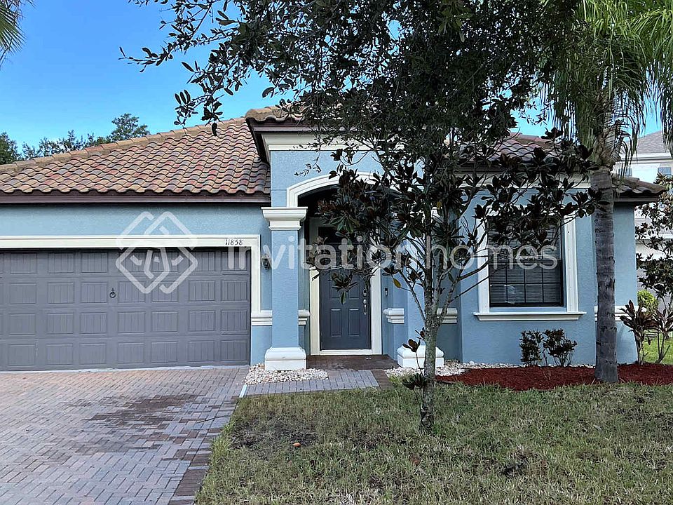 Home Features and Amenities: Air Conditioning, Garage, Granite Countertops, Kitchen Island, Long Lease Terms, Luxury Vinyl Plank, Open Floorplan, Pet Friendly, Primary Bedroom on Main, Recessed Lighting, Single Story House, Smart Home, Stainless Steel Appliances, Tile, Walk in Closet, W/D Hookups, and professionally managed by Invitation Homes.