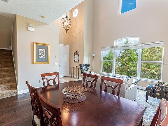 Wide open lake views are the first thing you will notice as you walk into this special designer done townhome. Thoughtfully planned with high ceilings, so much natural light and downstairs master suite. Gorgeous wood floors and tile throughout the downstairs. Open kitchen overlooking family room which leads to private screened outdoor living space. Downstairs master suite includes well appointed bath with separate tub and shower and a spacious walk-in closet with triple tier storage. Upstairs there are two additional bedrooms - each with a private bath. The open upstairs loft living area could be a fourth bedroom. In addition, there is a tucked away "niche" which is an ideal home workspace. This is an end unit which offers more windows and added privacy. The outdoor lanai is ideal for relaxing and entertaining. The garage is oversized for two cars and includes additional storage space. Montacino is a enclave of gated townhomes with resort like pool. Tucked away on the shores of Lake Charity , yet incredibly close to the new restaurants and shopping as well the established cultural corridor of Maitland. This Impeccably maintained one-owner home offers Over 2400 square feet - the floor plan offers so many possibilities- especially for today's new work at - home lifestyle. . Pristine, tastefully done and ready for you move in and enjoy an incredible lakefront living today.
