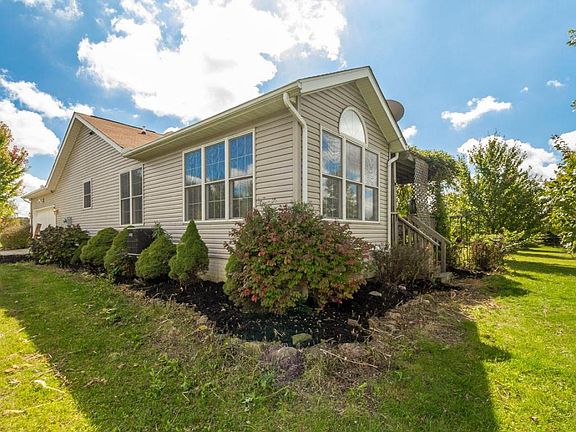Gorgeous Ranch Home on 4 acres with pole barn! A little piece of country heaven only 5 minutes to 71 and 20 minutes to Polaris. Spacious floor plan. New flooring throughout main living areas. Large eat-in kitchen with stainless steel appliances! French doors off kitchen lead to a sunny 4 seasons room. Large deck with beautiful pergola! Vaulted ceilings in the Great room give an openness to the room. A beautiful gas log fireplace adds a welcoming warmth. The private Master bedroom suite boasts a large walk-in closet and Jacuzzi tub! Full basement with a finished family room and recreation area. Plenty of storage! Pole barn measures 24x36x12 and comes with a BMV automotive car lift.