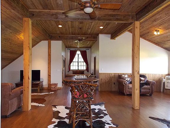 Off Grid . Solar Power - no electric bill, Spring Water - no city water bill - propane heat - no city gas bill. Unrestricted Land .. Build what you want and when you want, no permits or inspections!! Horse Stables Beautiful Buffalo Riverfront.. Plus a storm shelter at the property!!!