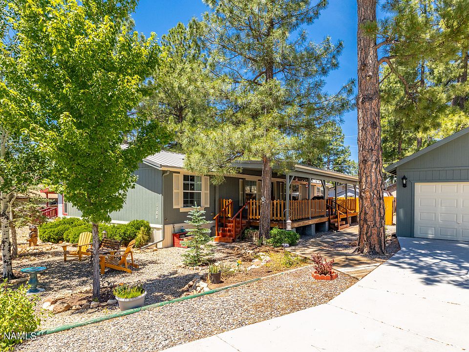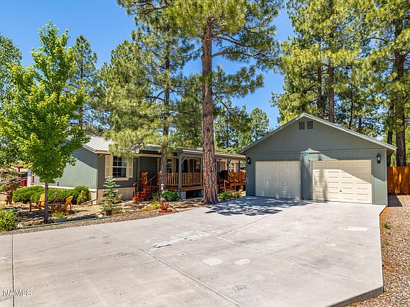Enjoy your private forest oasis in this immaculately kept Cavco Home that sits on a double lot with a huge covered deck, oversized 2 car garage, storage sheds/workshop and a low maintenance yard full of mature trees, privacy fencing, fire pit for smores and the potential for RV Parking. The kitchen is a hosting dream, with loads of counterspace, built-ins in the cupboards including pull out shelves and walk in pantry. The kitchen opens to a family room and there is a separate formal living area as well. The kitchen also has an exceptionally large eat-in kitchen area with a breakfast bar! The bedrooms are split floor plan with lots of space in between. It is the perfect place to enjoy the Mountain Living, only steps away from the forest trails, You don't want to miss this one!