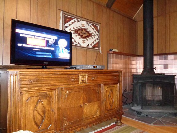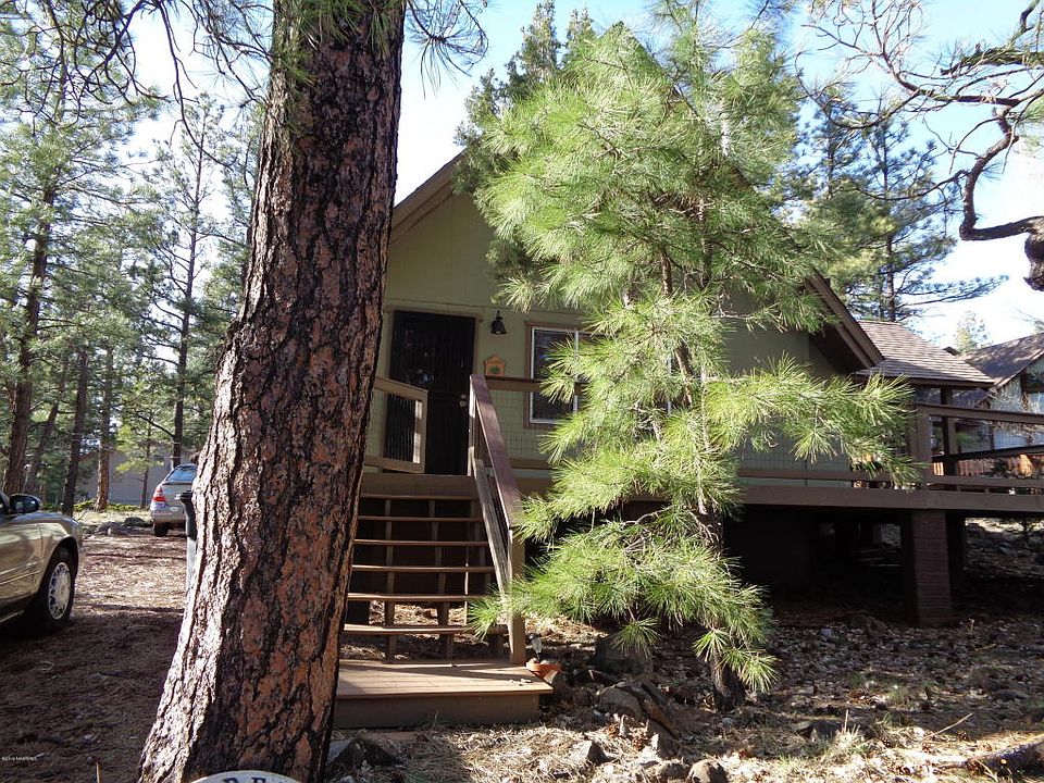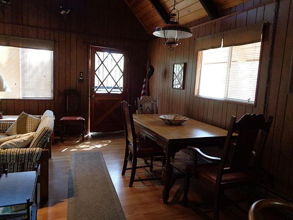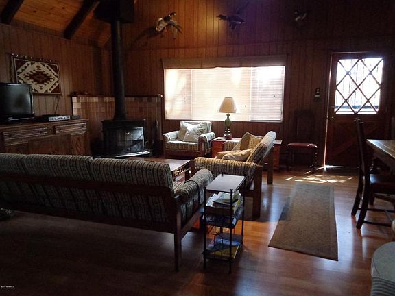 Great cabin in the woods that sits in the center of 3 lots of pristine Ponderosa pine forest in Pinewood Country Club. Two bedrooms on main floor with a sleeping loft upstairs for 4. Large front deck and covered side deck allows for outdoor entertaining. Wood burning stove for enjoyable evening fires. Master bedroom has queen, second bedroom has twin beds, upstairs sleeps 4. NO SMOKING INSIDE HOME. AVAILABLE MAY, JUNE, JULY, SEPT, OCT.