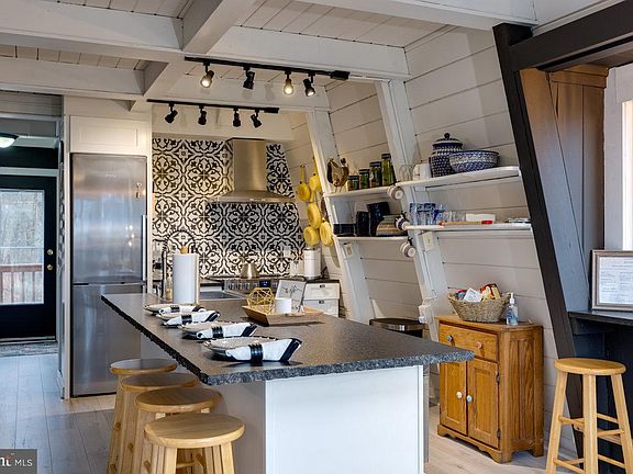 Welcome to Fairway's ultimate retreat in Basye, VA! Enjoy stunning mountain views from the large windows of this one of a kind cabin. Step into pure relaxation in this 3 bedroom, 2 full bathroom and 1 half bathroom cabin overlooking the beautiful Bryce Mountain. Peace and quiet is surrounding you with a wrap around porch that is great for entertaining your guests. Fire pit and adirondack chairs convey. Fully furnished, this home sleeps 8 comfortably. On the main level you are greeted by a modern aesthetic and ample space to entertain. Enjoy dinner in the dining area, bar seating, or at the indoor/outdoor window overlooking the mountain views. The kitchen boasts high end appliances, all stainless steel. Unique black countertop adds great space for cooking and serving. From the kitchen, you look into the living area with gas log fireplace and grand mantel. Access to the deck can be found in two locations off the main level. On the second level you'll find 3 updated bedrooms and 2 full bathrooms. Each bedroom sleeps 2 individuals and fits full to queen sized beds. Located on 0.57 of an acre, there is great opportunity for outdoor upgrades. Don't miss out on this one of a kind opportunity to own a property with premium mountain views and modern aesthetic. Call to schedule your showing today.