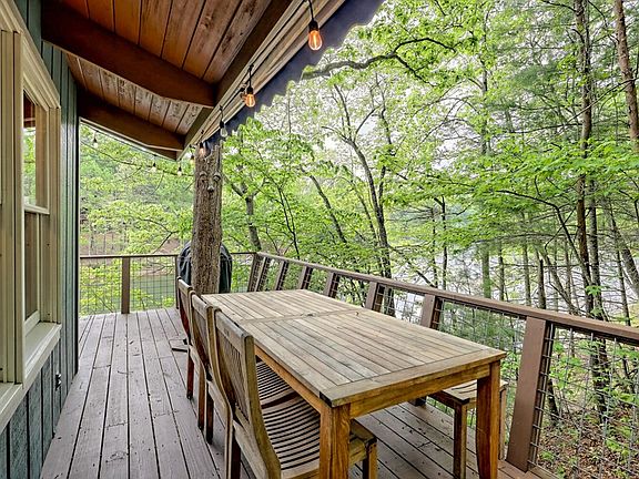Listen to the tranquil SOUNDS OF NATURE, including the majestic Bald Eagles soaring overhead. Enjoy easy access to the lake, nestled in a protected COVE with year-round water levels. Maintenance-free, illuminated, and powered aluminum DOCK complete with a covered boat slip and Hydro-hoist BOAT LIFT. Enjoy functionality and comfort, with the primary bedroom and laundry conveniently located on the MAIN FLOOR, while spacious upper bedrooms provide ample accommodations. Entertain the kids with a dedicated playroom and cozy bunks on the terrace level. Real WOOD FLOORS, central heating and cooling, a WOOD STOVE for added warmth, and multiple DECKS offering picturesque lake views. The updated kitchen and bathrooms feature GRANITE countertops and tile shower. Anderson windows and sliding doors enhance both aesthetics and energy efficiency."