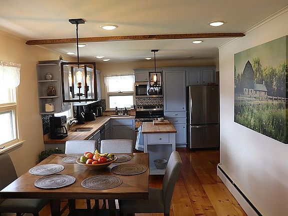 2.98 acres with backside views of Okemo! Minutes to VAST access, hiking trails, multiple lakes, Jackson’s Gore and Okemo Mountain. Enjoy picking berries and apples as you walk the paths to your pond. Added bonuses include the finished basement family room, 2 car attached garage, 2 additional outbuildings, a mud room and a walk-in cedar closet. Perfect getaway home for recreation and relaxing or as a primary residence.