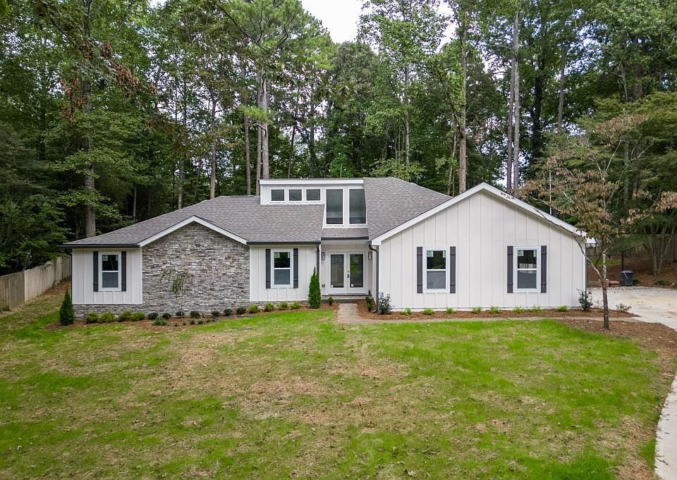 More than your normal renovation here! Most walls were taken back to bare bones, new electrical, lighting, wiring, plumbing,...you name it. Home was expanded approx 200' to accommodate larger modern master bath and to increase size of secondary bedrooms (thus current tax records are incorrect). Walls were opened/removed to have a wonderful open floor plan... all new windows, except huge fixed glass windows in kitchen & mas BR. All new cabinets include 9' X 5' black island complimented by white wall cabinets...all quartz tops both kitchen & baths. Up scale modern brick on fireplace in vaulted great room. LVT thorough out home...beautiful total tile & quartz in both baths. Walk through 12' Double sliding glass doors to a huge covered 12' X 24' rear porch! Total privacy on this immaculate culdesac lot... did I mention the Walton school district + the convenience of wonderful restaurants, shopping, East Cobb Avenues with many high end establishments and Braves stadium close by. Excellent sense of community & family-friendly venues in this area of Cobb County.
