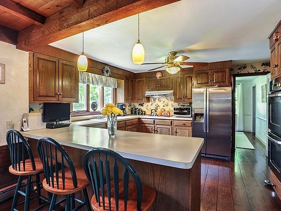 Charming Reproduction Colonial by Dattman with 2100sf of living space. This 3 bedroom/ 2-1/2 bath home is tastefully maintained and has many wonderful details. Warm and inviting fireplaced familyroom with beamed ceiling and wide pine flooring opens up to the kitchen with new refrigerator, double oven, wet bar, Bosch dishwasher,Jenn-Air stove top. Front to back fireplaced living room is the perfect spot for family gatherings or spend time outdoors on your beautiful private stone patio. Home features alarm system, walk out basement, two car attached garage, Buderus furnace, master suite with newly renovated bath and two walk-in closets. Walk up attic provides an opportunity to expand. Recent updates include new back granite steps, new tiled master shower, new garage doors, recently painted living room and exterior trim. Enjoy living in the Queen Anne Lane neighborhood which is located a few steps away. Easy access to ROUTE 3, DERBY STREET SHOPPES, restaurants and schools.