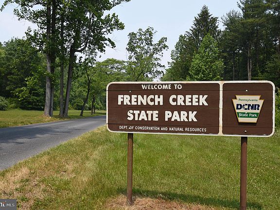 This is the cottage in the woods that dreams are made of, and it could be the ideal home or perfect retreat! Located in walking distance to the heart of french Creek State Park, including Hopewell & Scotts Run Lake and all the hiking trails. This home has had extensive improvements made by the owner to include replacement of the kitchen & Baths, and changes to the floor plan that created a Master suite w/ private bath, two additional bedrooms, and a private office space. The stunning kitchen has high ceilings, hard surface counters, and a wonderful tile backsplash, and a sizable island and butlers pantry. The home has upgraded window's and has been properly insulated to insure comfort during all seasons. The home is equipped with a large mini Split system allowing it to be both cooled w/ central air and heated by the heat pump, all while being equipped w/ a wood stove & electric baseboard heat. The exterior siding has been replaced w/ a deep blue hardie board siding. The back yard is fully fenced and includes a large shed w/ electric previously used as a workshop, another shed for storage, and a wood shed for the stove. Make your appointment to admire this wonderful cottage.