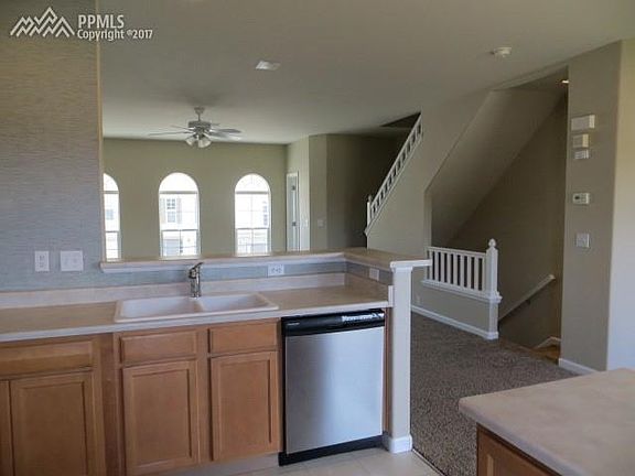 Beautiful townhouse in desirable Walters Commons! Close to shopping, schools and easy access to Colorado Springs or Denver. Large rear deck, built-in speakers, gas fireplace, recessed lights. 1 car garage with opener, new carpet. Won't last long! Move-in ready, 4 bedrooms, 4 bathrooms, wood deck, gas fireplace, and all kitchen appliances included.