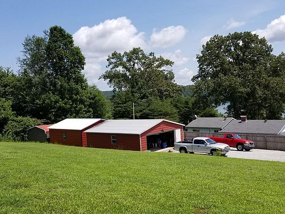 OVERLOOKING WATTS BAR LAKE. Are you looking for a home with LAKEVIEWS, LAKE ACCESS & OVER-SIZED DETACHED GARAGES? This great property is situated on 2 lots (.99 acre). The detached garages offer plenty of storage for boats, cars & more. This ranch style house features an open living concept. The interior is complete with gleaming hardwoods, living room with brick FP, kitchen/dining combo, two spacious bedrooms, 1 bath with dressing area, and large laundry room with extra storage (use to be 3rd bedroom). You'll enjoy incredible sunsets from a large deck!