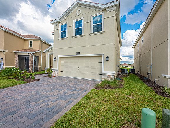 Welcome to Champions Gate!. From the 18 hole Golf Course in your backyard, to the 3 resort style pools, 2 restaurants and 2 tiki bars, this neighborhood leaves nothing left to be desired. Upon entering this brand new Smart home, you will find an open floor plan with views straight through to your pristine golf course views. The open concept features tile throughout all living areas. Kitchen boasts solid wood cabinetry and crisp white solid surface countertops, SS appliances are the finishing touch to your amazing workspace. Upstairs you will find Owners Suite, bedrooms and a loft space as well as laundry room for easy access. HOA Includes 75 food/bar credit, High speed internet, use of 18 hole golf course, driving range, 2 gyms, a theater, arcade, lazy river, and splash pad.