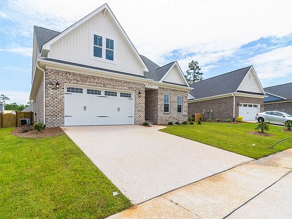 Welcome to The Brunswick by Hardison Building. This lovely two-story brick home includes three bedrooms and three full baths. Inside this nearly 2600 sq. ft. home you will find a large open kitchen and living area. The living area offers a cozy gas fireplace with a granite surround. The kitchen features a large center island with plenty of perimeter cabinets for storage, as well as quartz countertops, stainless steel appliances and tile backsplash. The formal dining room, located just off of the living area, is perfect for entertaining. The first-floor owner's suite offers a large walk-in tile shower, double vanities, a private water closet, and a large walk-in closet. A second bedroom with a full bath and laundry room complete the first floor of this home. Tucked away for privacy upstairs is a large bonus room and flex space, along with the 3rd bedroom and full bathroom. Additional features include laminate floors throughout 1st-floor living areas, wood stair treads, sodded and irrigated yard, and covered rear porch.