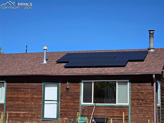 Tons of potential! Clean and ready for your finishing touches. THREE bedrooms and TWO FULL BATHS all on one level. Incredible views and privacy on expansive .69 acre lot close to Hwy 24 for easy access to Divide and Woodland Park. Wood frame rancher with open floor plan and upgraded vinyl windows. Very low electric bills since new solar panels were installed in 2021. Wood stove in large living room with walk out to huge deck and fenced yard. Roof 2015. New stainless steel gas range/oven. Updated LVT in living room and dining room. Move in ready - all appliances plus washer and dryer included. Carpet has been removed from bedrooms and hallway and flooring will be included in sale. Oversized one car garage was turned into workshop and can be easily converted back to a garage. If you're looking for a place that needs just a bit of elbow grease, this is the home that will give you the greatest return on your investment. Call listing agent for more info.