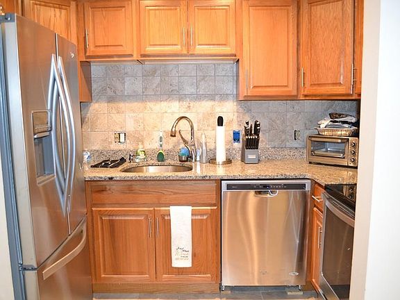 Tons of updates New kitchen with oak cabinets, granite counters and stainless steel appliances- fridge, flat cook-up range, and dishwasher. New flooring throughout the entire condo. New bathroom with granite sink top, glass shower door, full tub, new flooring & new lighting. Upgraded wall-mounted A/C's and glass slider doors. Great first floor placement in complex; bedroom slider door exits to beautiful lawn area facing a residential neighborhood. Available August 1st.