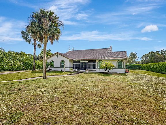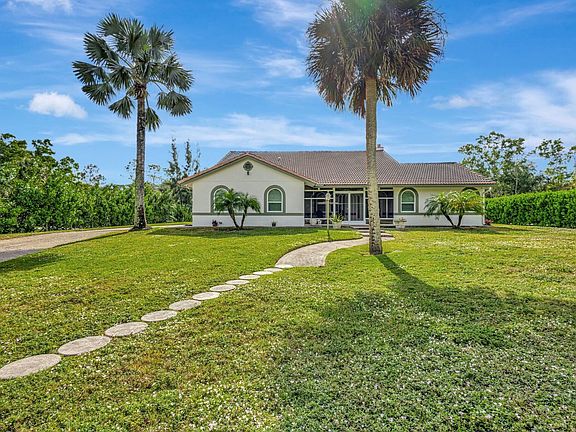 Welcome to this stunning 3-bedroom, 2-bathroom home in Jupiter Farms, an equestrian community that offers plenty of space for your horses, RV, and all your toys. A brand new metal roof will be installed before the end of January, providing peace of mind and durability for years to come. Nestled on over an acre of private land, this property has been fully remodeled in 2017 and is surrounded by mature oclusias, ensuring ultimate privacy.Inside, you'll find tile flooring throughout and a large, open, custom-designed island kitchen with expansive quartz countertops--perfect for gatherings and entertaining. Enjoy cozy evenings by the fireplace in the living room, and take advantage of the spacious master suite with a walk-in closet, built-in closet system, and a luxurious master bath with double vanity sinks, and a corner soaking tub.