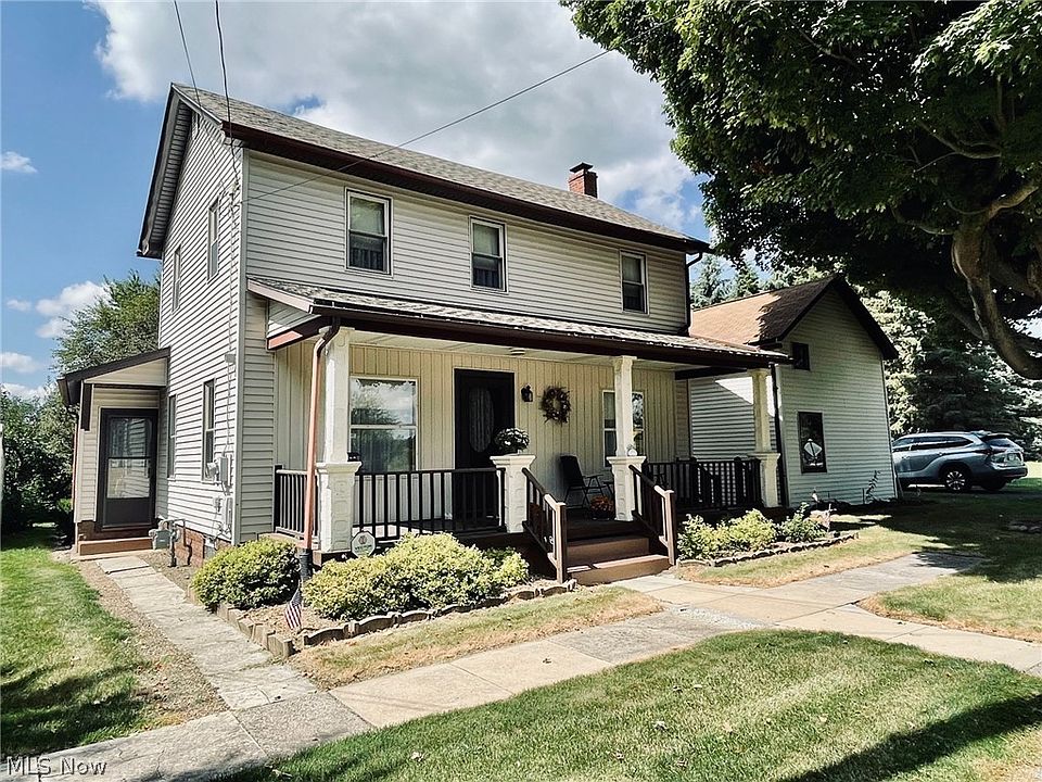 Relax on your front porch and dream of days gone by in the quaint little Village of Greenford, OH. The storage building once homed "The Greenford Country Store" where dry goods were sold. As you enter the front door, you will be greeted by the natural wood stairway that splits the living room and formal dining room. Heading to the back of the home, you will delight in the cook's kitchen and adjoining summer kitchen. The storage room off the kitchen could make a great pantry room. Heading up the back stairway, you will find three spacious bedrooms with nice sized closets and wood flooring. Spacious full bath with a walk-in shower. Updates to the home in past 15 yrs include: Roof, Windows, Furnace, A/C, electric panel, basement water proofing, porch flooring, exterior siding. 2 car garage, paved drive and storage building. Start making your own memories in this well maintained family home since 1927!
