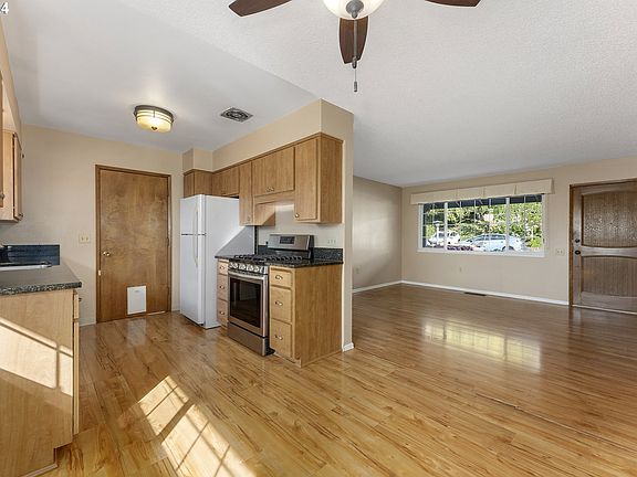 Perfect one level home in the heart of 55+ King City community. Beautiful two bedroom home on corner lot. Kitchen has a granite counter tops with an undermounted sink, gas range and refrigerator. Central air conditioning, gas heat, fenced back yard with covered patio. Garage is the size of a two car garage with room for a work shop, hobby area, craft room etc. This community includes a 9 hole golf course, pool, library, grand clubhouse/lounge with banquet kitchen, shopping, transportation and many more amenities.