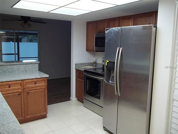 This beautiful 3/2/1 home is located in desirable Pinebrook Estates. As soon as you open the front door, you will fall in love! The spacious living room is accented with cathedral ceilings and gorgeous wood laminate floors that flow into the dining room and hallway. The living room opens to the dining room and the kitchen. This OPEN concept makes this home look and feel much larger. The Kitchen is completely UPDATED with GRANITE countertops, a breakfast bar, stunning cabinets, and all STAINLESS STEEL applicances. The SPLIT BEDROOM PLAN is perfect for maximum privacy. The master bedroom also has cathedral ceilings. Enjoy your morning coffee or an evening glass of wine on your charming screened patio. The backyard area is perfect for barbeques and for the pets to play. The yard is surrounded by a vinyl fence for added privacy. The main roof is newer in 2005, the flat roof is brand NEW in 2017, the A/C system is all NEW in 2016, the hot water heater is NEW in 2017, all NEW Ductwork in 2017, and the garage door is NEW in 2014. This home clearly demonstrates pride of ownership. NO FLOOD INSURANCE IS REQUIRED here. Easy access to the Interstate with a short commute to the airport, Tampa, Clearwater, and the Gulf Beaches. With a short walk, you can enjoy Pinebrook Park with Tennis, Basketball, Racquetball, a playground, and picnic area. Hurry! This one will not last.