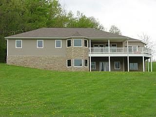 Private setting with over eleven acres in the Northfork School District. This Custom built ranch has a wonderful walk-out basement and many extras. Schrock Maple Cabinetry can be found in this custom kitchen with ceramic tile, hard surface countertops, breakfast bar, all S/S appliances including a Maytag side by side refrigerator, double dutch oven by Jenn-Aire, Jenn-Aire smooth surface cook top, dishwasher, and microwave all stay. A Convenient laundry room is located just off the eat-in dining room. Washer/dryer also stay. This home also has Lots of accent lighting, vaulted ceilings and a great room making it easy to entertain family and friends. French doors lead to the wonderful deck with maintenance free Trex decking. A wonderful view of the valley awaits you as you step onto the deck. All 3 bedrooms are on the first floor. A full bath is shared by 2 of the bedrooms. The master bedroom has a large master closet and French doors that also lead out to the deck, a great place to put a hot tub. The master bath has two stainless steel bowl vanities with ceramic tile and a linen closet. The large, walk-in shower has a built in bench with decorative ceramic tile completing this space. The basement is partially finished with some electric, drywall, a full roughed in bath, 9 ft ceilings, (2) 200 amp panels, and a high efficiency geo thermal furnace. French drs lead out to the front of property. This basement could be easily finished.For more information about this property, call 1-800-950-9885 ext. 1007. “For A Free Approval” Call Stacey today at 740-404-7505.