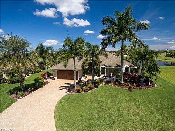 Experience stunning views of the water, wild-life, sunsets (with great shade when you need it!). Wonderful street: quiet, dead-end, large circle with park-like setting to the front. Much of the home has been professionally updated (new kitchen and tray ceiling are part of the update) and the 2010 high-end pool/lanai area is sensational! Solar and Elec heat integrated with type of use etc...So many extras..too many to mention! The garage is oversized, the landscaping is full, 15 mature palms and colorful gardens. Cape Royal is Lee County only so no Cape Coral taxes or assessments! The Cape Royal Golf Club boasts 27 holes of championship golf, many leagues and activities for golfers and non-golfers. Plus scrumptious meals in the quaint clubhouse that is open to the public! Golf is optional and the community is pet friendly, has many ongoing activities and clubs. Note: There are no cart paths behind the home and the view is awesome! Experience the difference in Cape Royal!