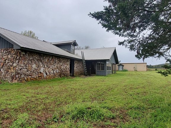 4 bedrooms, 2 full baths, 2 half baths, rock home is ranch style with metal roof. Huge living room features a rock fireplace. All interior doorways and hallway are wide, could easily be made handicapped accessible. Sun porch off dining room and living room. Hidden safe in floor of pantry. 40 acres of mostly pasture, several garden spots, and 2 ponds. 30 x 40 metal shop with electricity, concrete floor, bay door and man door. The house has public water and there is also a well. High speed internet available from Arkwest.