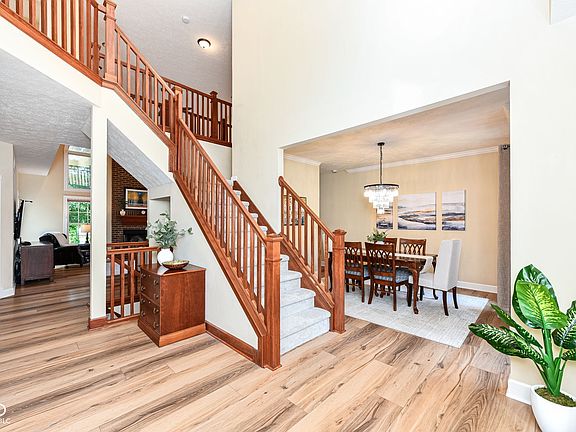 Gorgeous Home in Reserve at Oak Hall. Light, Bright and Airy with a 2 Story Great Room that is perfect for entertaining or enjoying a fire sharing an evening at home. New high-end luxury vinyl plank flooring throughout most of main level for a cohesive look. Large Kitchen with plenty of cabinets and granite-topped center island. Private 1st floor office with custom builtins and view of beautiful backyard. Lovely Primary Suite with chandeliers in walk in closet and over the jetted tub. Quartz counter double vanity adds to the sparkle. Generously sized bedrooms + a jack and jill bath. Finished Basement with wet bar and full-size fridge + microwave. Oversized movie screen stays. Wiring is in place for ceiling-mounted projector and 7.1 surround sound. There is additional space for exercise equipment and for games. Enjoy the backyard with playset and large deck with pergola & swing. 3 car garage. Community Pool, Basketball Courts and Playground. Be a part of the vibrant Fishers life--close to Geist Reservoir, shopping, dining and schools.