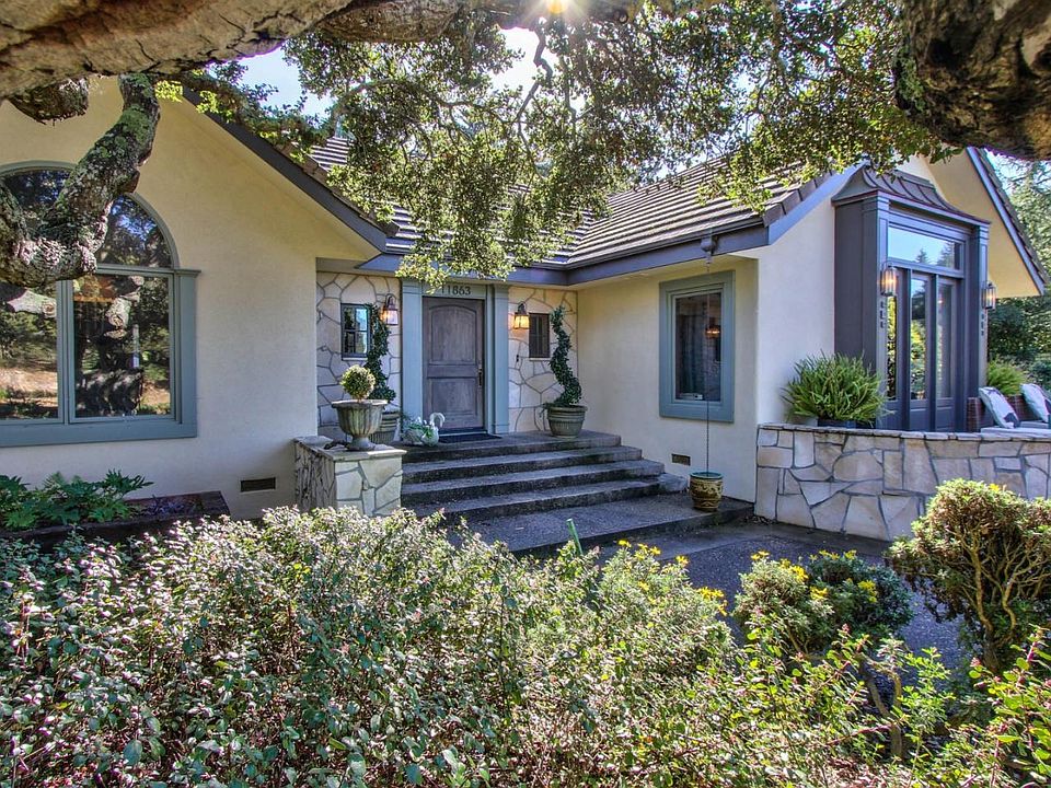 Chic and Sophisticated in Bay Ridge. Renovated and single level. Stylish new kitchen includes; all newer appliances, marble counter tops and designer paint cabinets. Hand troweled "pigment in" plaster, hand stained baseboards and window trims. All new elegant master bath. Attractive paint and hardwood floors throughout. Two beautiful fireplaces, built in wine cabinet, french doors and bay windows. Large 600 sf bonus room. Located in an exclusive community. Bay Ridge is the best kept secret on the Peninsula with incredible sunny weather and privacy.