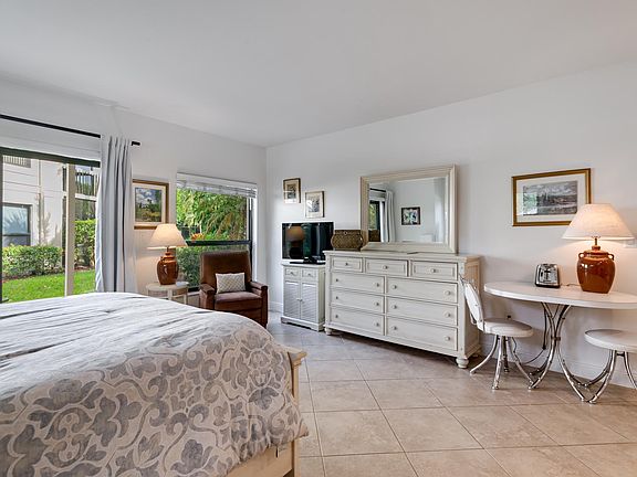 Bright and beautifully furnished studio tucked away in the Palm Beach Polo and Country Club. Unit is on the first floor with an updated kitchenette, bathroom, washer/dryer and smart-TV. Enjoy your own covered patio with a view of the pond, dedicated parking and heated community pool. This unit is turnkey - just bring your personal items! A very short drive to downtown West Palm Beach and PBI. Lease terms are available for 8 or 12 months with water and electric included. First, last, and security deposit due upon signing. Small pets are allowed for a non-refundable pet fee. Tenant pays HOA and POA application fees. Available April - November only Security deposit and two months rent due in advance. Pets allowed for a fee. Exit cleaning fee. Background check and application fees.