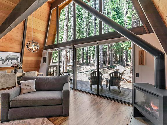 Quintessential Tahoe Donner cabin located on one of the best greenbelt settings in the subdivision! This charming home has a spacious living area, newly renovated kitchen & bathrooms, two bedrooms, a loft sleeping area, an expansive deck, and a wonderfully private setting backing to almost two acres of open space right out of the sliding doors. The current owner has completed numerous updates to the home, including new floors, a gas fireplace, light and plumbing fixtures, new appliances, including a gas stove, new kitchen countertops & cabinets, full bathroom remodels, sanding the wood ceilings and walls, installing a new tankless water heater, and more! The new modern touch, combined with the fresh wood-paneled walls, the freestanding fireplace, and stunning scenery, creates a European ski chalet ambiance with which to fall in love! With 180-degree secluded wooded views from the back deck and floor-to-ceiling windows, the cabin was brilliantly designed to enjoy the area's natural beauty. Inside, the rich, robust trusses and beams, soaring ceilings, and open kitchen create a timeless design waiting to be an extraordinary sanctuary for the next owners to enjoy. This turn-key house has it ALL, including character and charm!