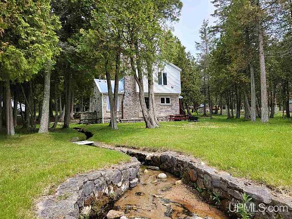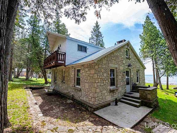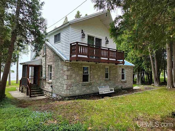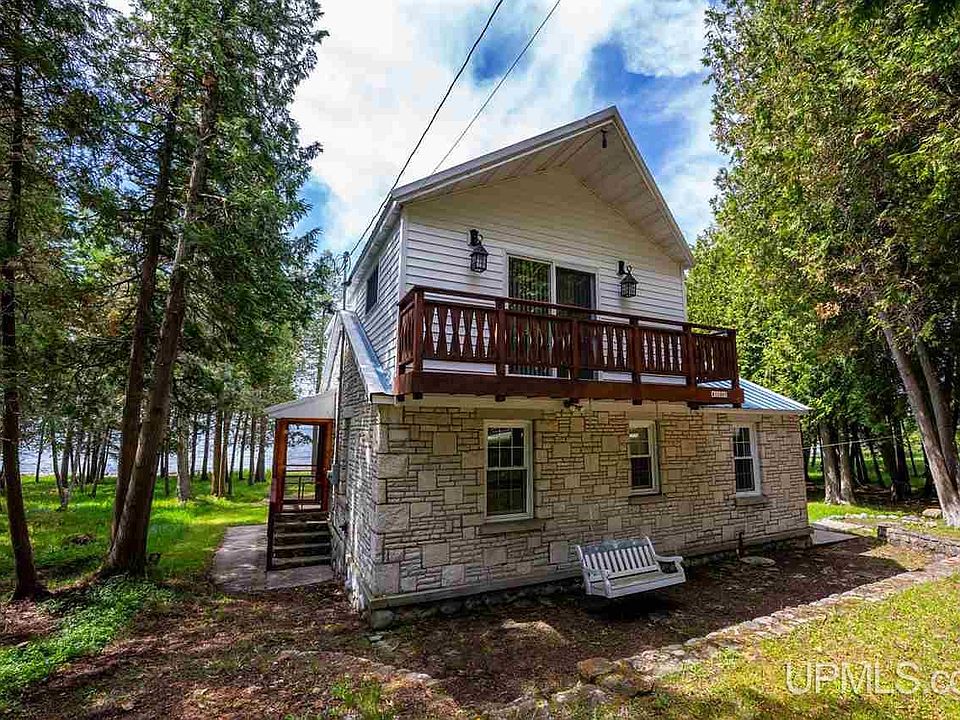 Breathtaking stone home on Lake Michigan! This 4 bedroom, 2 bath home features an expansive living room with vaulted ceilings, fireplace, and views of the Lake. Enjoy the serene sounds of the lapping water and the stream created by the artesian well from the master bedroom balcony. The main level has a 3/4 bath, 2 bedrooms, and fully equipped kitchen. The master bedroom/bath is upstairs with laundry on site, plus a bonus 4th bedroom/office that offers tons of storage in the walk in closet and built in dresser. This property is situated on 4 lots, cedar trees scatter the property- sure to not impede on the view. Convenience of an insulated heated 3 car garage located across the street, with electric allows you to put your tinkering mind at ease. Plus, there is bonus room above garage that could be finished for additional work space or storage. This home comes with the amenities of Hiawatha Sportsmans' Club, which purchasers must join the club as a part of the purchase of this home. Located in Michigan’s beautiful Upper Peninsula, HSC is a member-owned wilderness playground with 35,000 acres of private forests, spring-fed streams, picturesque lakes, and winding trails. Hunt, fish, golf, hike, explore, or simply relax. Enjoy a few miles of sandy beach as a part of this club (photos provided). Visit https://www.hiawathaclub.com/ for additional information. This home is located in Naubinway, which is known to be Lake Michigan's most Northern point! Just about 40 miles from the Mackinac Bridge, this is conveniently located just off of US2 for year round access, but on a private road for seclusion. Appliances and furnishings come with, making it turn key for your new home or UP get away!