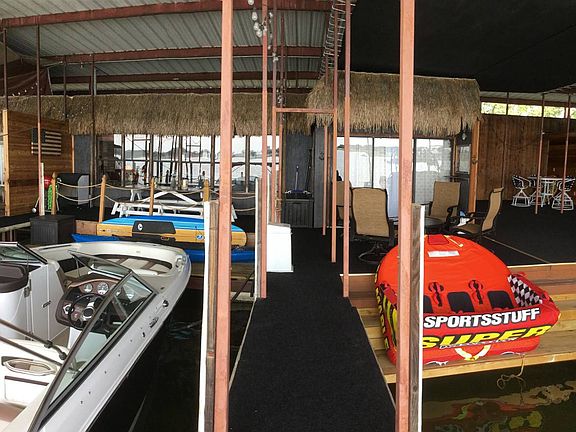 DOCKOMINIUM: "Fallout Shelter" includes custom, high end furnishings, great bay views, no maintenance, easy access, 8,000 lb Hydrohoist, newly installed Ozarka Lift for two jet skis. Fully functioning bathroom with flushing toilet (very rare - not an incinolet), your very own ice machine (160 lbs ice/day), shower, kitchen, appliances, wine/drink fridge, dock boxes, LED lighting, bedroom, couch has pull out bed, etc. BH12 is the only boathouse that offers 1.5 slips. Premier location in Catfish Bay. Monthly fee for 50' enclosed boat slip and a half (paid to the marina): $550 If you pay 1 year at a time, you get a free month. Monthly fee for electricity: Approx. $20 Monthly fee for Collection System Maintenance: $30 That's it.